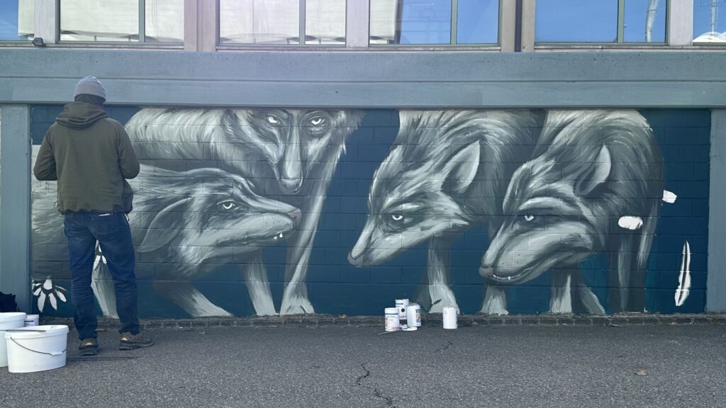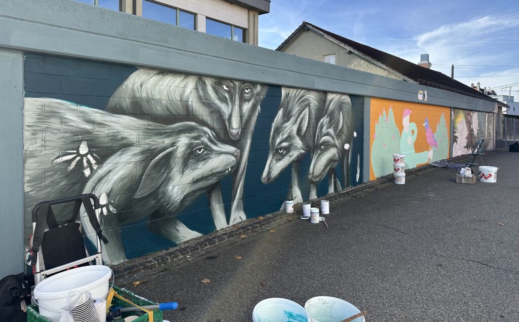 Mit dunklen Augen schauen sie die Vorbeigehenden an. Ihre Ohren sind angewinkelt, ihre Schnauzen neugierig entgegengestreckt. Bei manchen blitzen die scharfen Eckzähne hervor. So genau kann man das Wolfsrudel wahrscheinlich nur auf einem Wandbild bestaunen. In der Natur sind die Tiere scheu und halten sich versteckt. Manuel* fühlt sich manchmal wie ein Wolf. Es ist seine eigene Geschichte, die als Inspiration für das Wandbild dient. Der St.Galler Künstler Martin Tiziani bringt es in der Werkhofstrasse in Wil an die Wand.